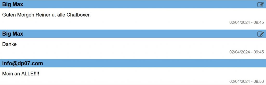 16:45 Uhr – Herr Schuler wickelt auch die 3. Runde DP07 für heute ab. Morgen ist Delta Papa wieder am Mike und in der Chatbox.