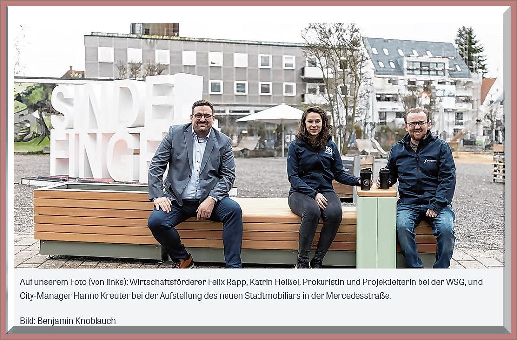 „Die Stärkung der Sindelfinger Innenstadt ist für uns eine Herzensangelegenheit. Ein wichtiger Faktor für die Weiterentwicklung unserer Stadtmitte ist die Erhöhung der Aufenthaltsqualität. Die Stadtmöblierung zahlt gezielt darauf ein. Ich bin überzeugt, dass die neuen Sitzmöglichkeiten gut angenommen werden und die angrenzenden Bereiche von dieser Maßnahme profitieren werden“, sagt Felix Rapp, Geschäftsführer der Wirtschaftsförderung Sindelfingen.