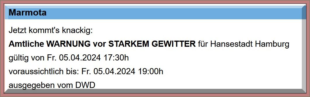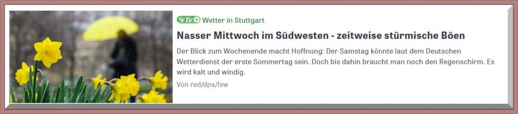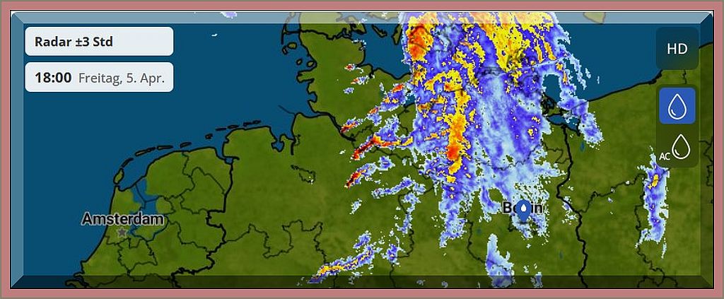 12:45 Uhr – Soeben hat mich meine Tochter angerufen. Wir canceln unseren Spaziergang, weil hier gleich Starkregen durchziehen wird.