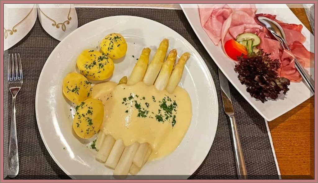 18 Uhr – Es gibt wieder Spargel, worauf wir uns schon freuen. Er duftet schon bis in mein Zimmer, also geht’s gleich los: