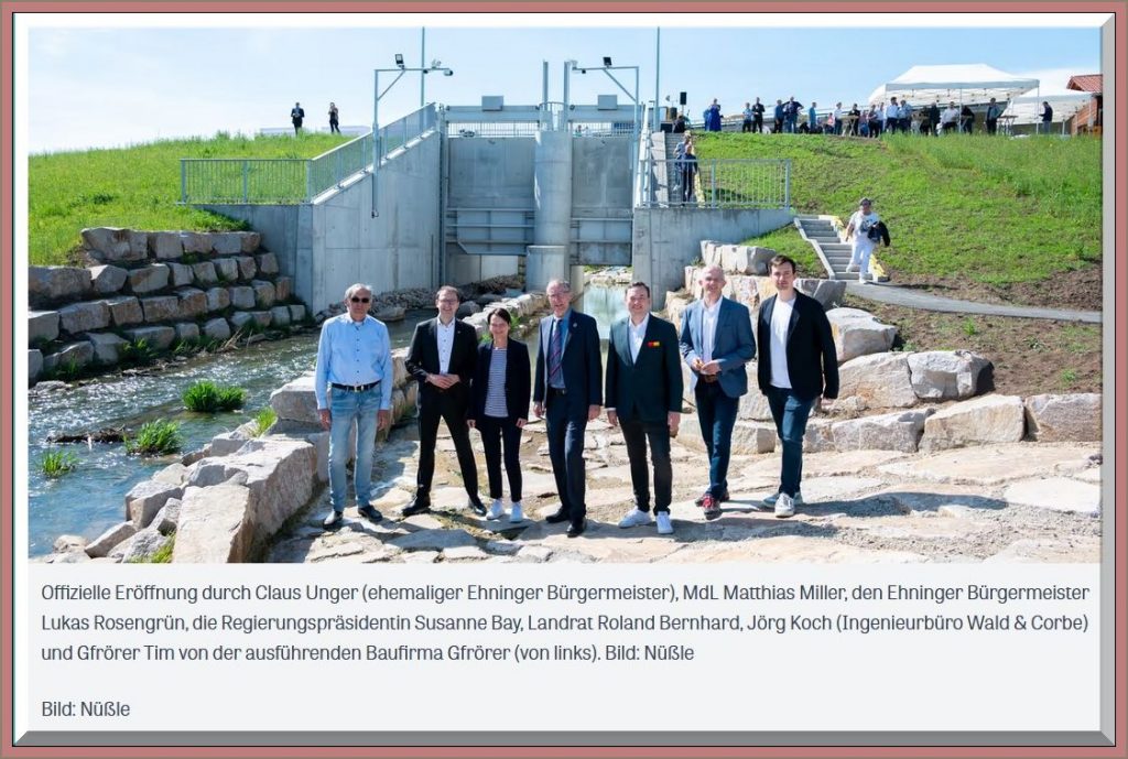 Ehningen. Mehr Schutz vor Hochwasser und Starkregenereignissen soll das neue Hochwasserrückhaltebecken im Maurener Tal bringen. Bei der Eröffnung der 4,8-Millionen-Euro teuren Anlage sagte Landrat Roland Bernhard: „Hochwasserschutz ist etwas Nachhaltiges für die Natur und die Bevölkerung und ist deshalb eine gesellschaftliche Aufgabe. Die Umsetzung durch den Wasserverband Hochwasserschutz Würm macht deutlich, dass eine solche Maßnahme ein Werk mehrerer sein muss.