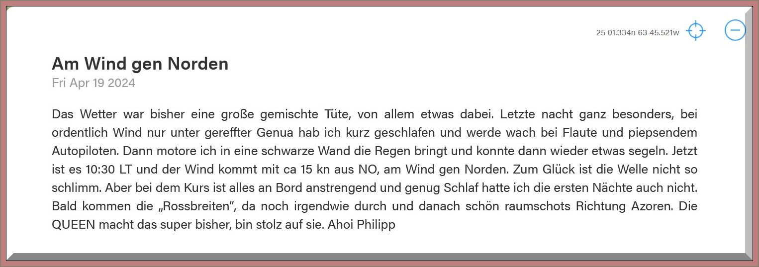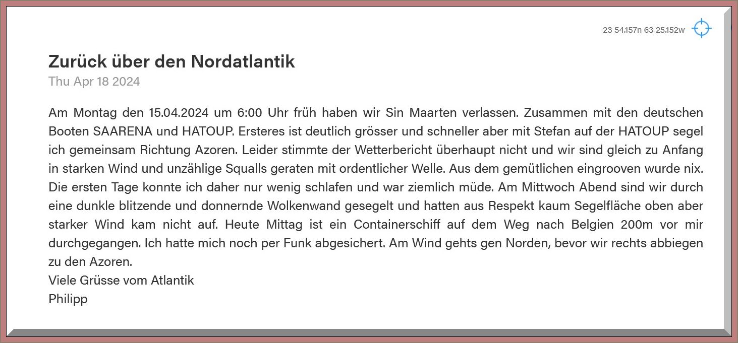 Heute geht mein erster Blick in die Karibik, um zu orakeln, was Philipp treibt: