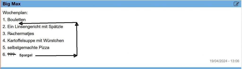 14 Uhr – Mit meiner Tochter telefoniert und unseren Spaziergang auf Mittwoch verschoben.