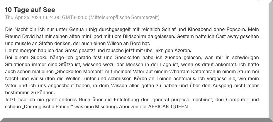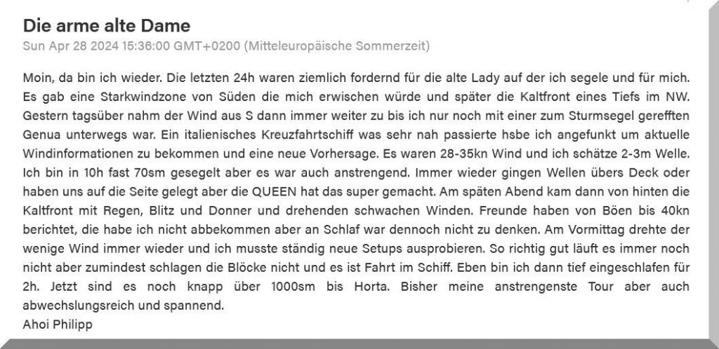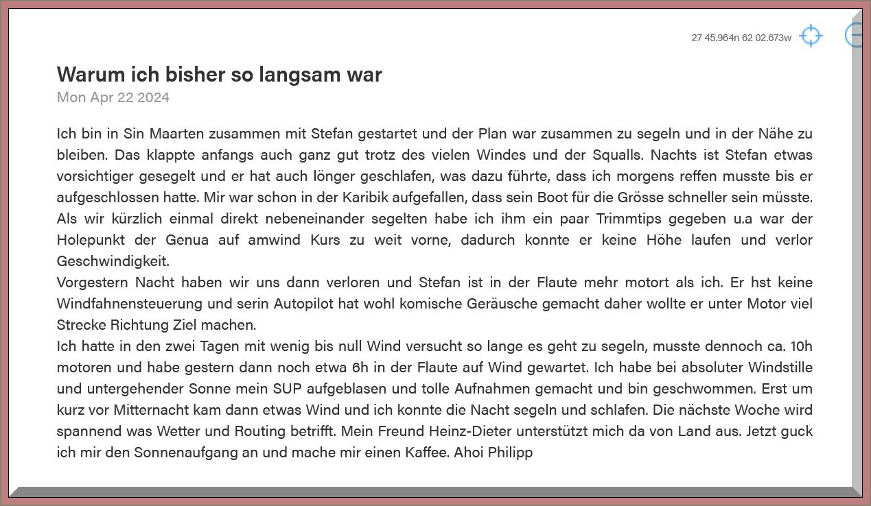 Bin gespannt, wie Du Dich dann den Azoren nähern wirst.