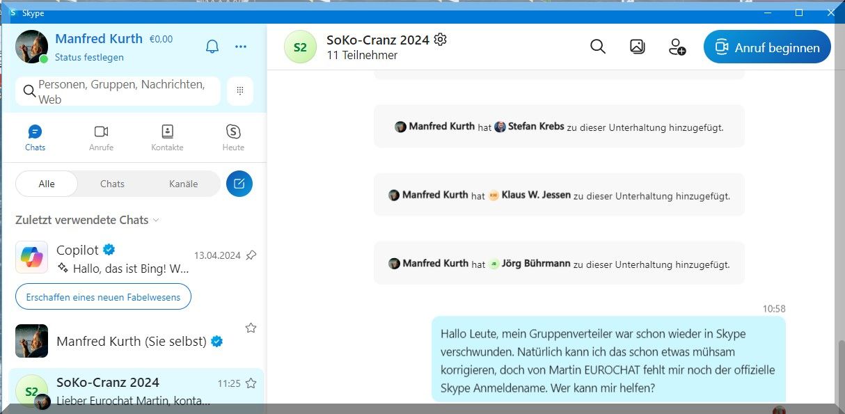 Inzwischen ist es mir gelungen 11 Teilnehmer wieder zu reaktivieren – nur Martin/EUROCHAT fehlt mir noch.