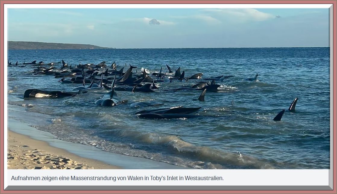 Aufnahmen zeigen eine Massenstrandung von Walen in Toby’s Inlet in Westaustralien.