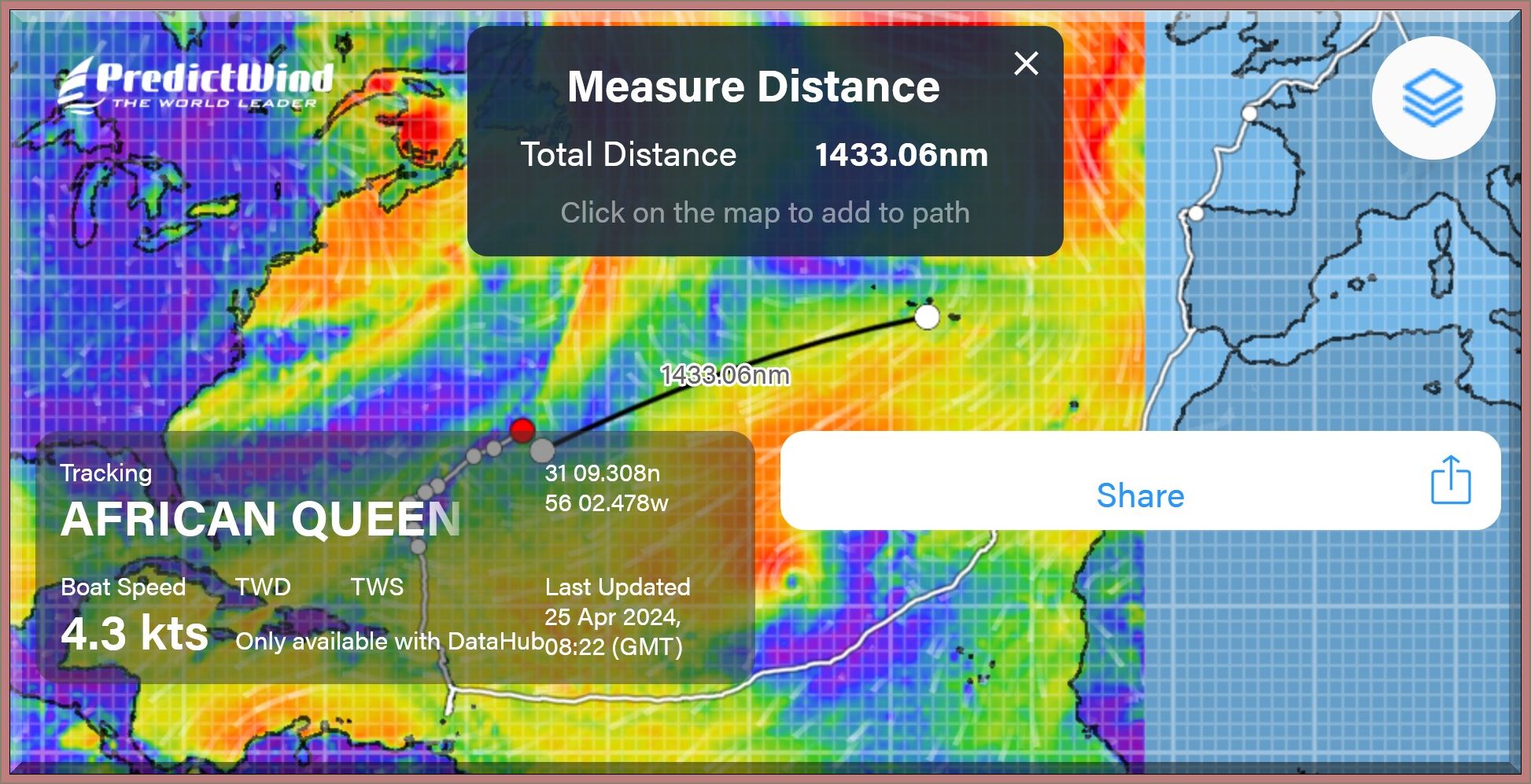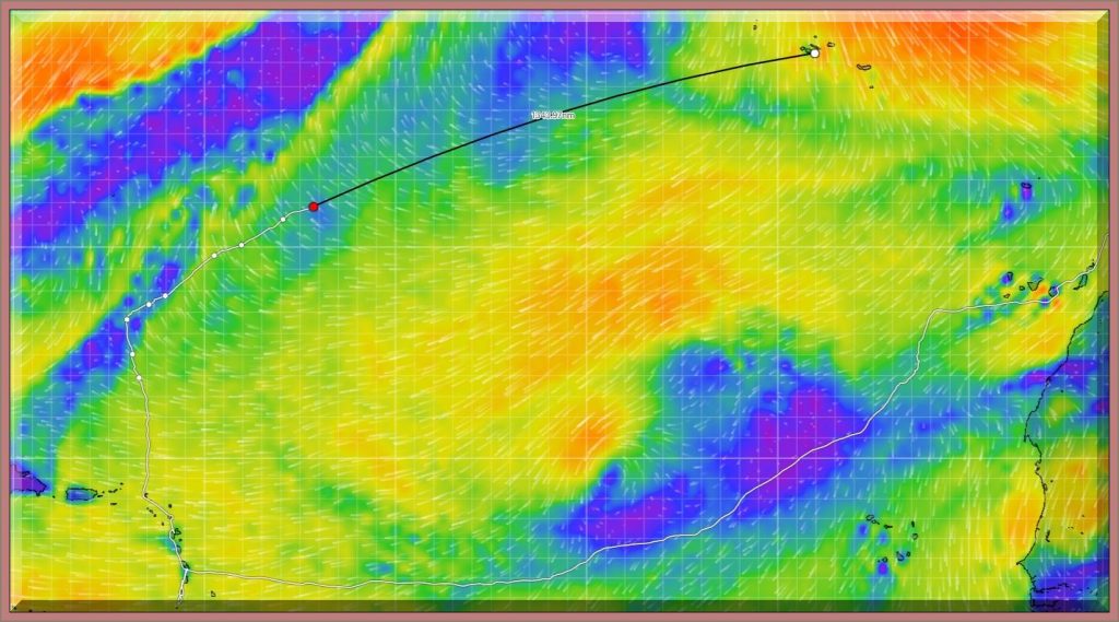 Ich finde Philipp trifft die richtigen Entscheidungen, um zügig nach Horta auf den Azoren zu kommen. Er kann ruhig noch etwas weiter nach NE segeln, um dann auf seinem Großkreis (schwarz) ans Ziel zu kommen. Rasmus stehe ihm bei: