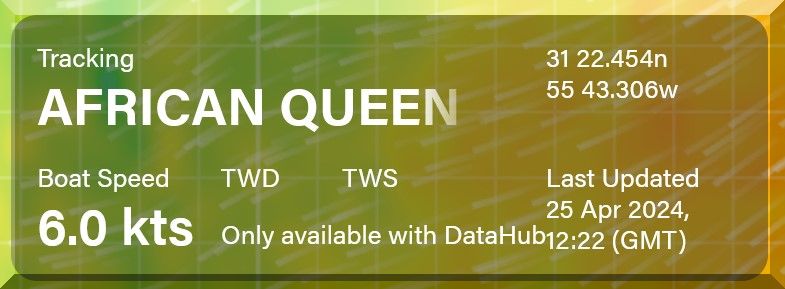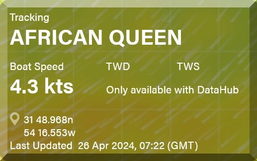 Die Segelyacht AFRICAN QUEEN kommt mit 4.3 Kn halbwegs flott voran. Die Windrichtung paßt: