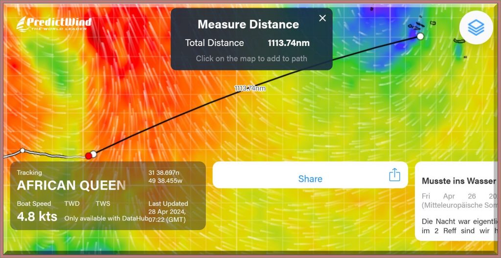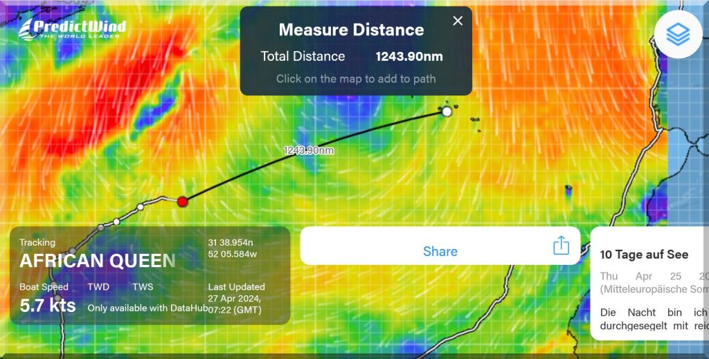 ……. noch mindestens 1.344 sm bis zu den Azoren