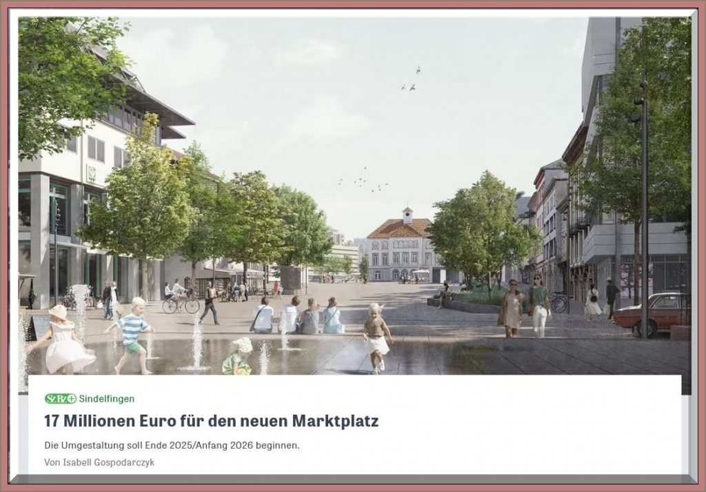 Sindelfingen. Ein Wasserspiel, das die Besucher des Marktplatzes begrüßt, und im Winter passend zum Weihnachtsmarkt Sterne, die die Effektbeleuchtung auf den Boden wirft – der Vorentwurf zeigt, wie das Sindelfinger Wohnzimmer künftig aussehen soll.
