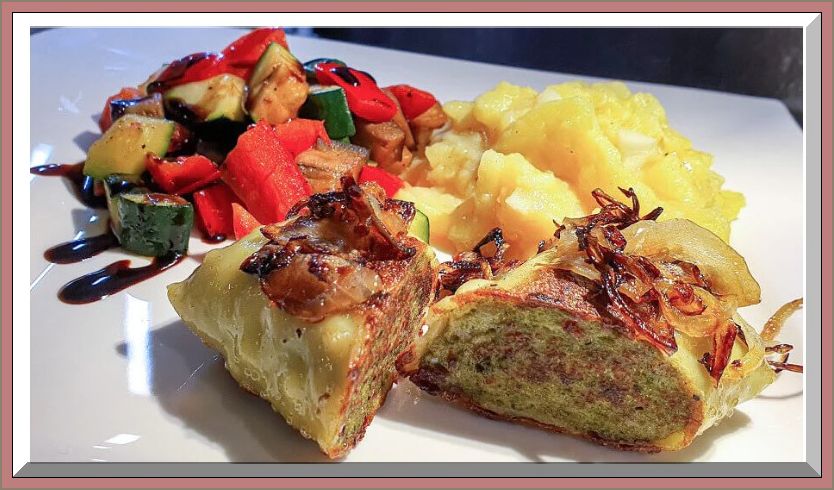17 Uhr – Es gibt die Maultaschen mit geschmälzten Zwiebeln, Kartoffelsalat u. einen Salat von der grünen Gurke: