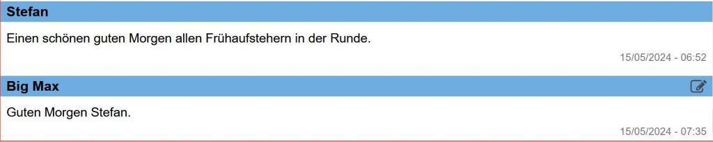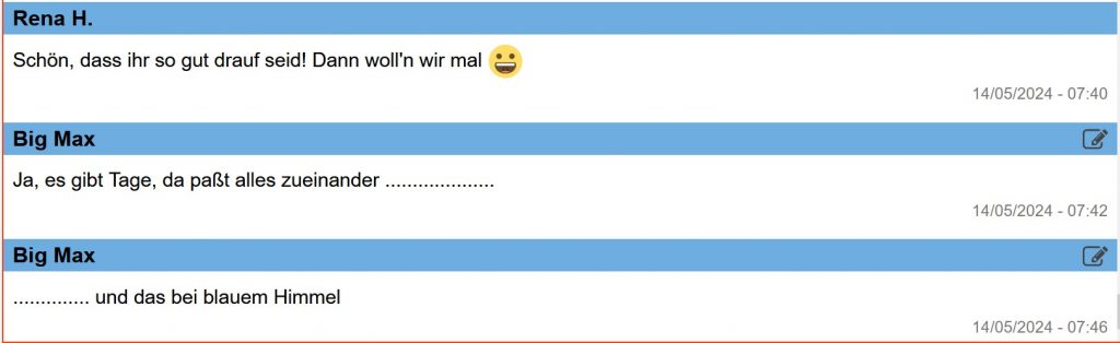 09:15 Uhr …………. so, ich bin zurück vom Hausarzt. Er sagte zu mir, wenn ich so weitermache, dann werde ich mindestens 100 Jahre alt. Das ließ uns beide schmunzeln.