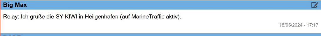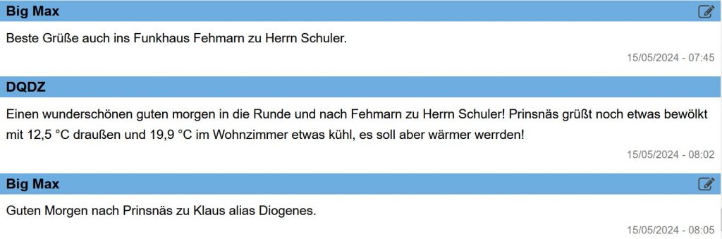 Herr Schuler versieht heute den DP07-Seefunkdienst. An Nord- u. Ostsee weiterhin Starkwind u. Windböen