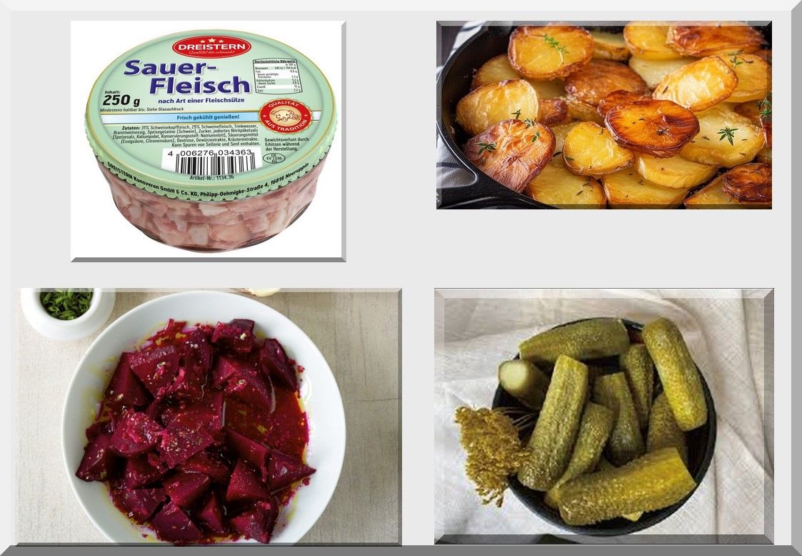 Eier, Käs, Wust un Schinken, – ook verschiedenerlee to drinken.