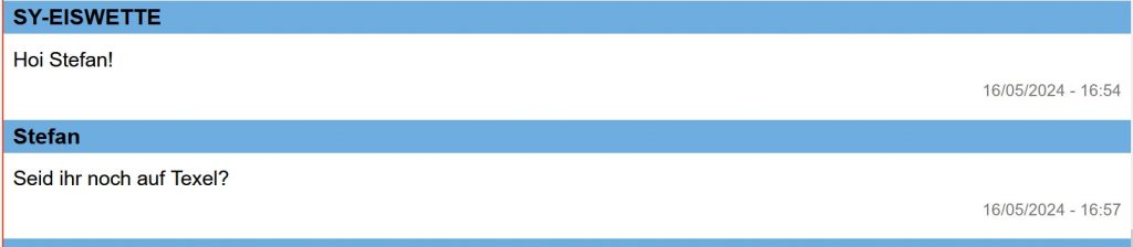 06:50 Uhr – Ich lese eine frohe eMail von meinen Baltischen Segelkameraden H & A.