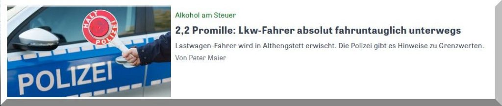 Alkoholisiert unterwegs gewesen ist am Samstagabend ein Lkw-Fahrer in Althengstett.