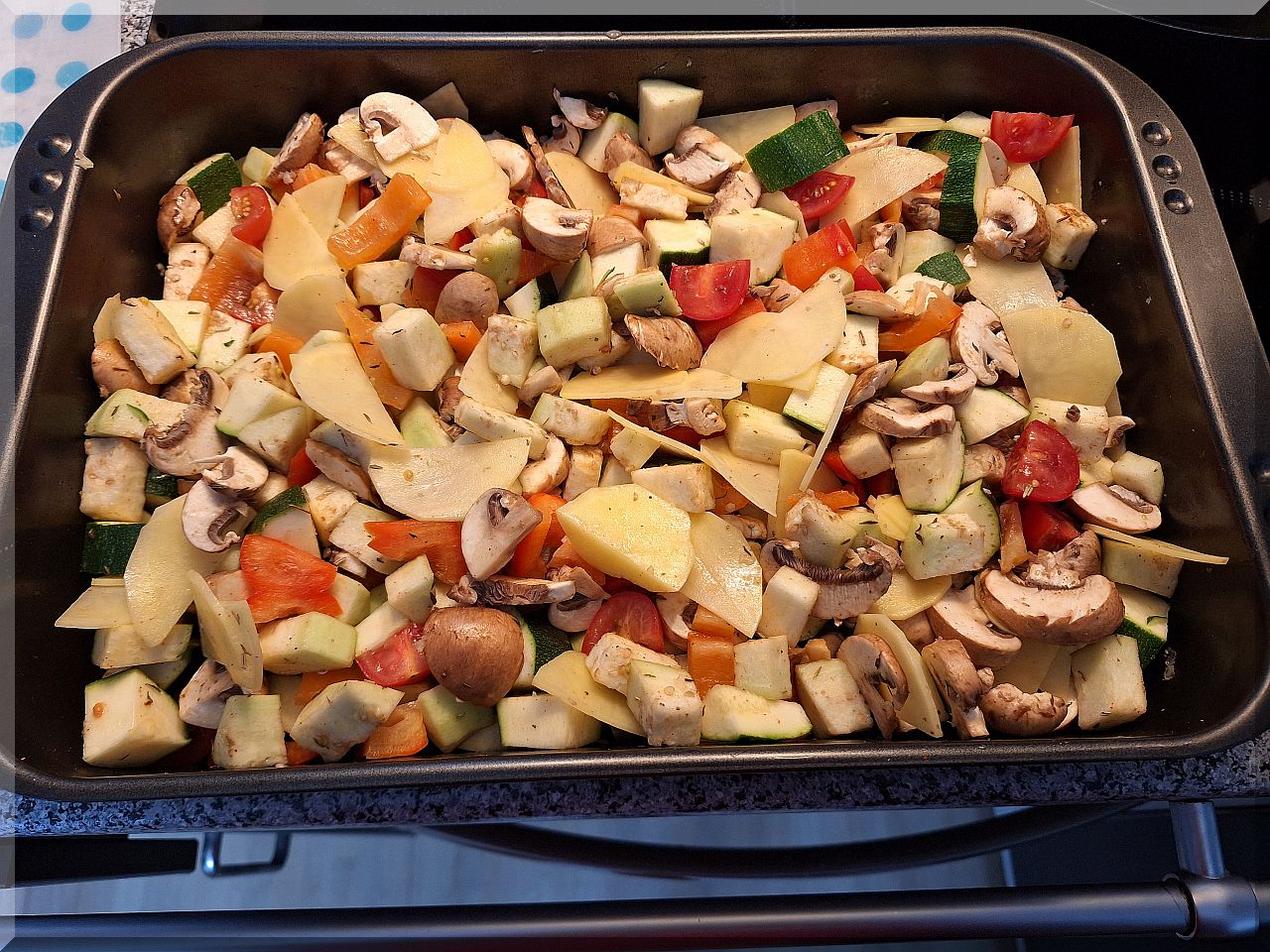 18 Uhr Abendessen: Provencalisches Ofengemüse mit Pollo fino: