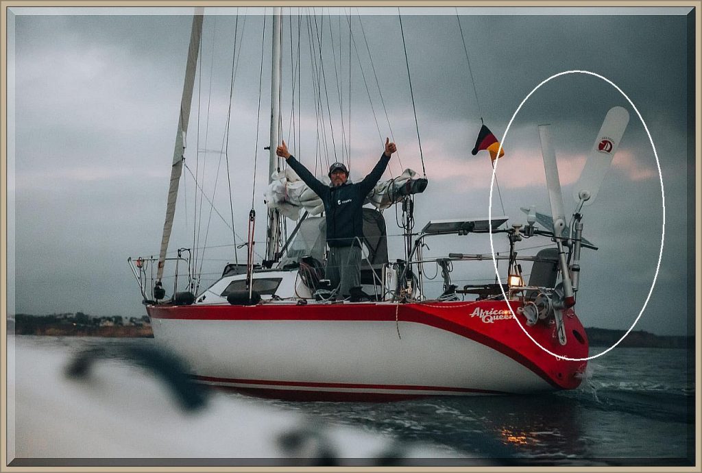 Hoffentlich hält sein Windpilot (Selbststeueranlage) durch.