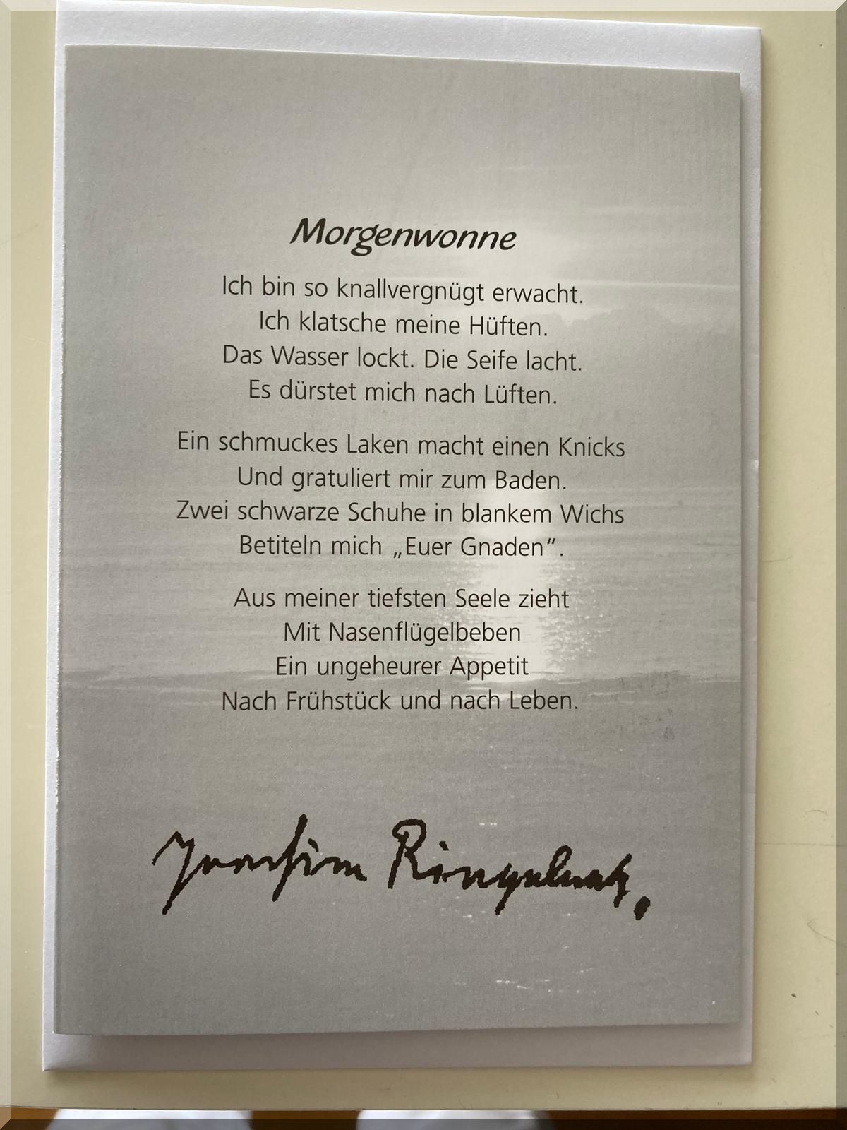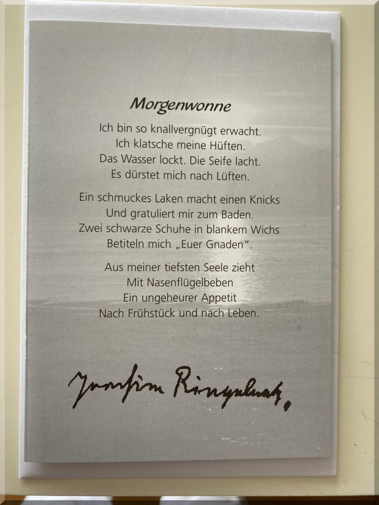 17:53 Uhr – Gerade erreichen mich noch Urlaubsgrüße von meinen LiWi’s. Ihr Tag gehörte heute Joachim Ringelnatz: