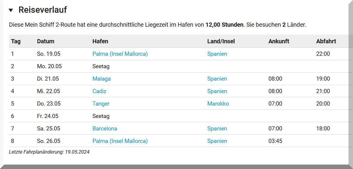 Meine Verfolgungsjagd der Mein Schiff 2: