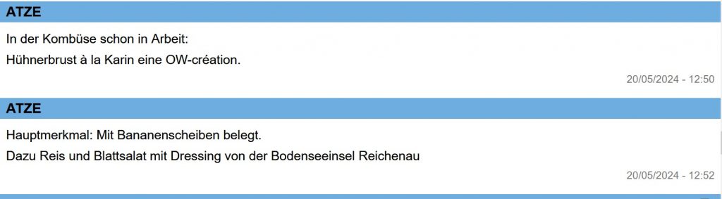 immer 50 Bouletten mitgebracht oder an Bord zubereitet.