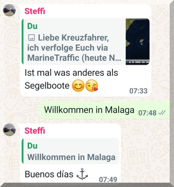 Ankunft meiner Seefahrer in Malaga um 7 Uhr