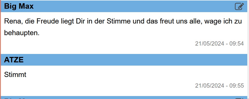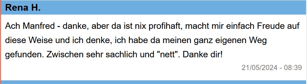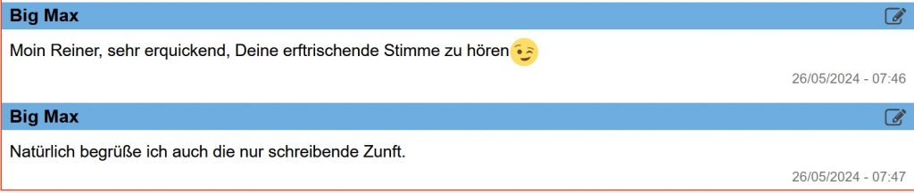 Das war doch wieder ein spontaner, inniger Erlebnisbericht.