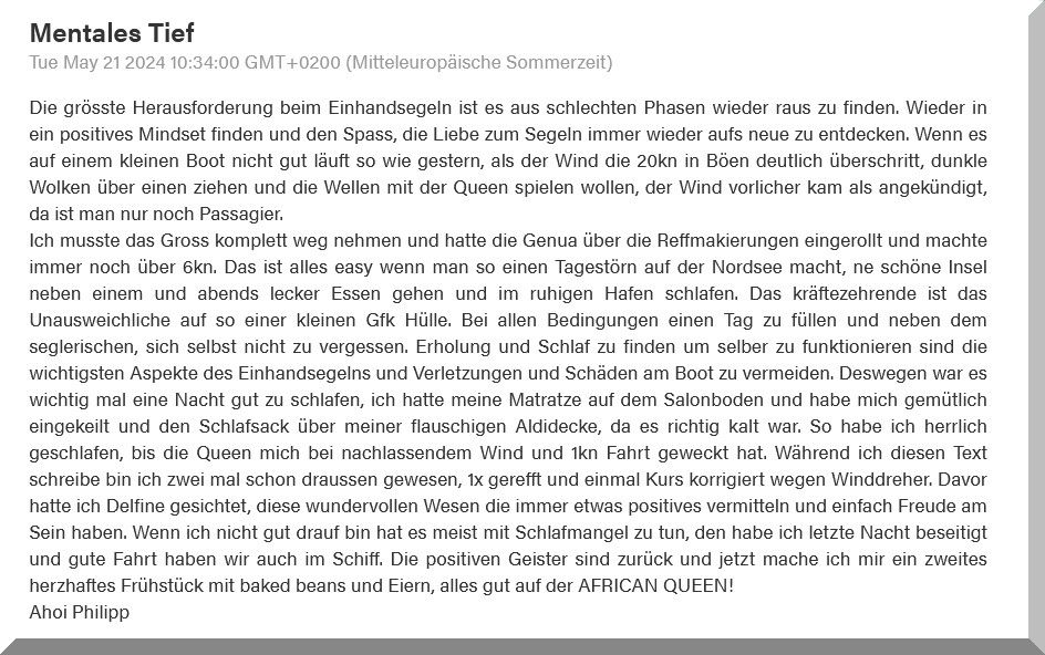 Ich kann jedes Wort nachempfinden, bin ich doch auch viel Einhand gesegelt,