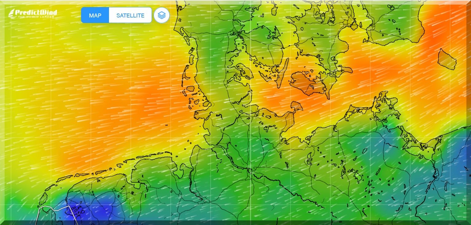 Der starke Wind des Tiefdruckgebietes katapultiert ihn förmlich zum Kanal.