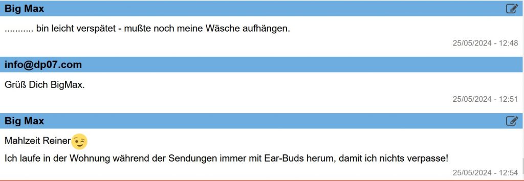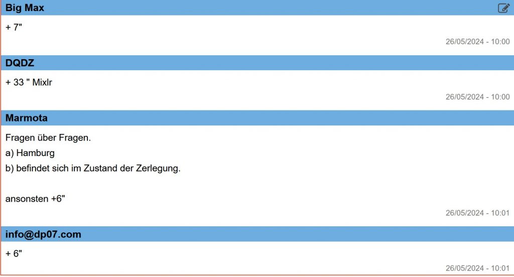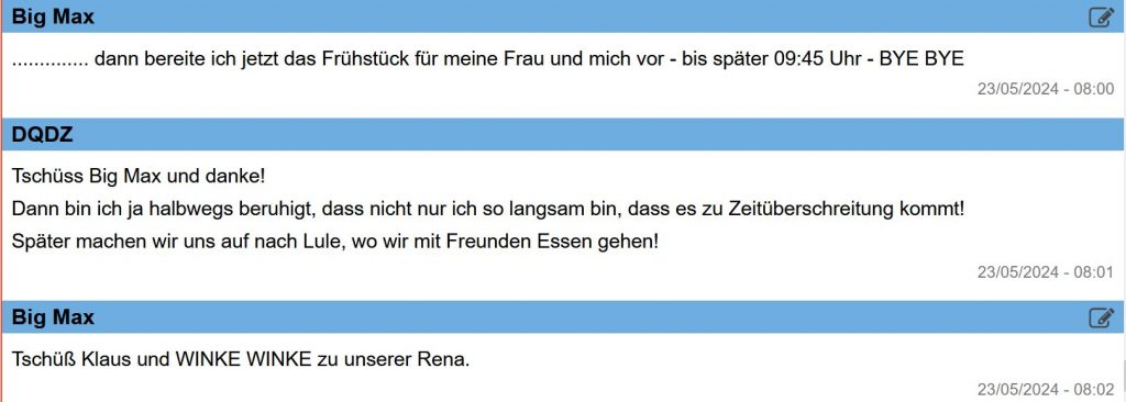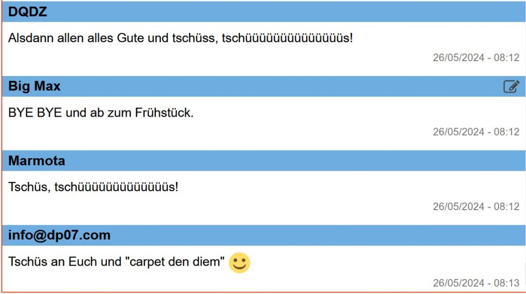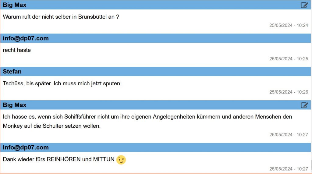 Ich erwarte um 07:45 Uhr Delta Papa wieder am Mike von DP07-Seefunk.