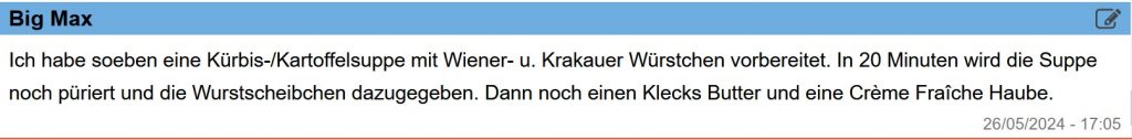 18 Uhr – Es hat wieder sehr gut gemundet.
