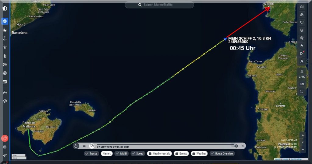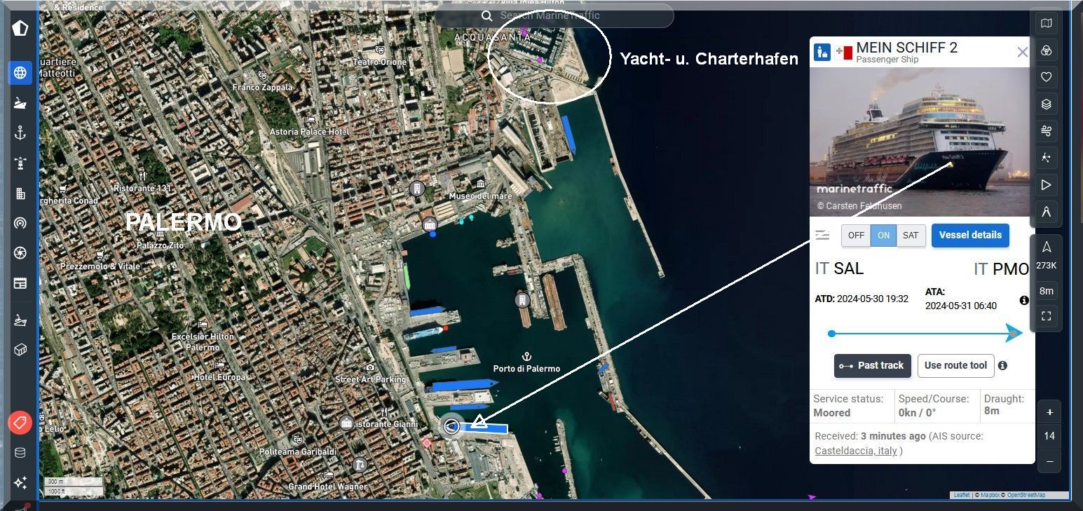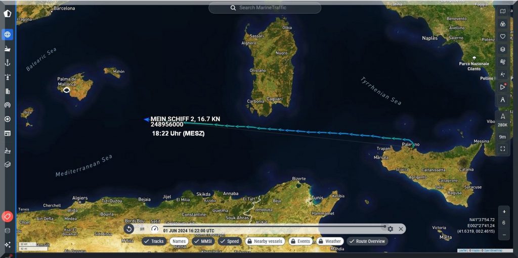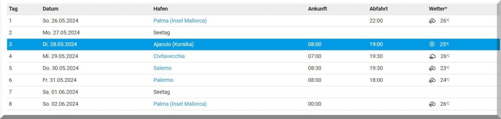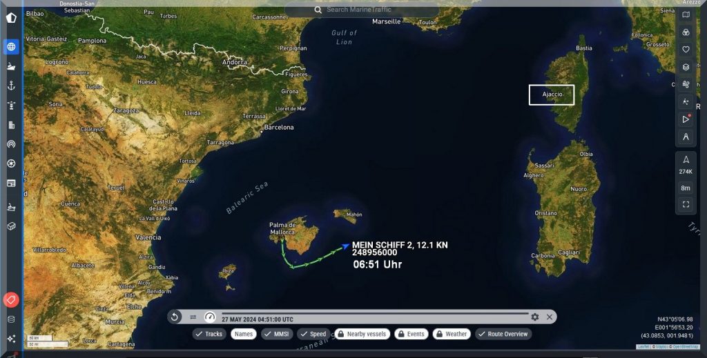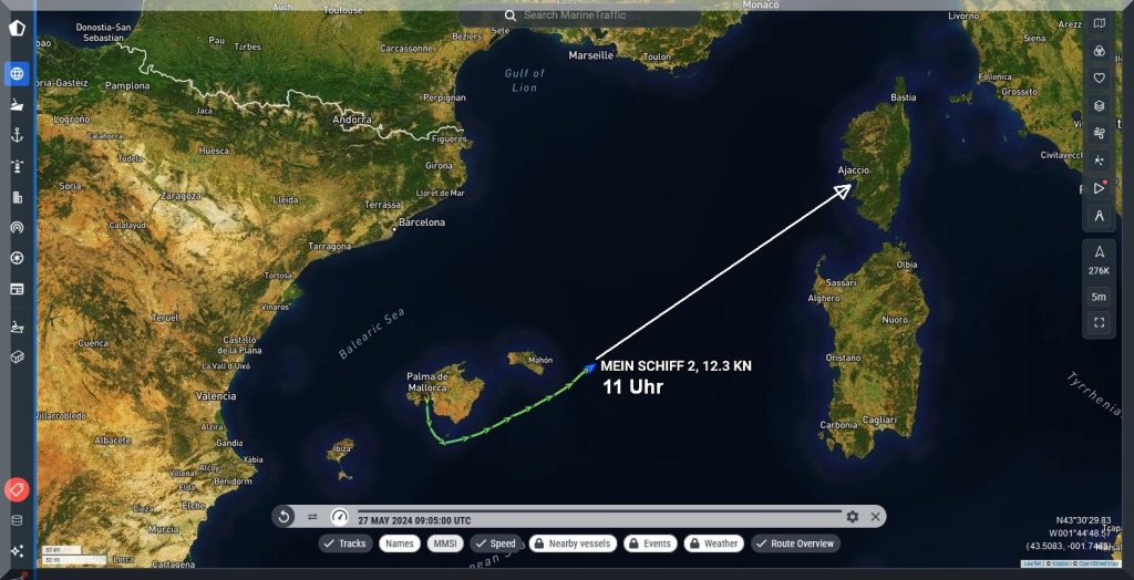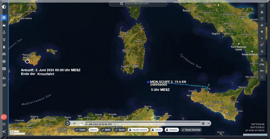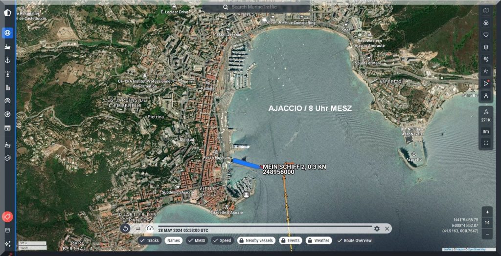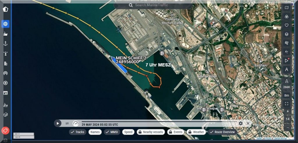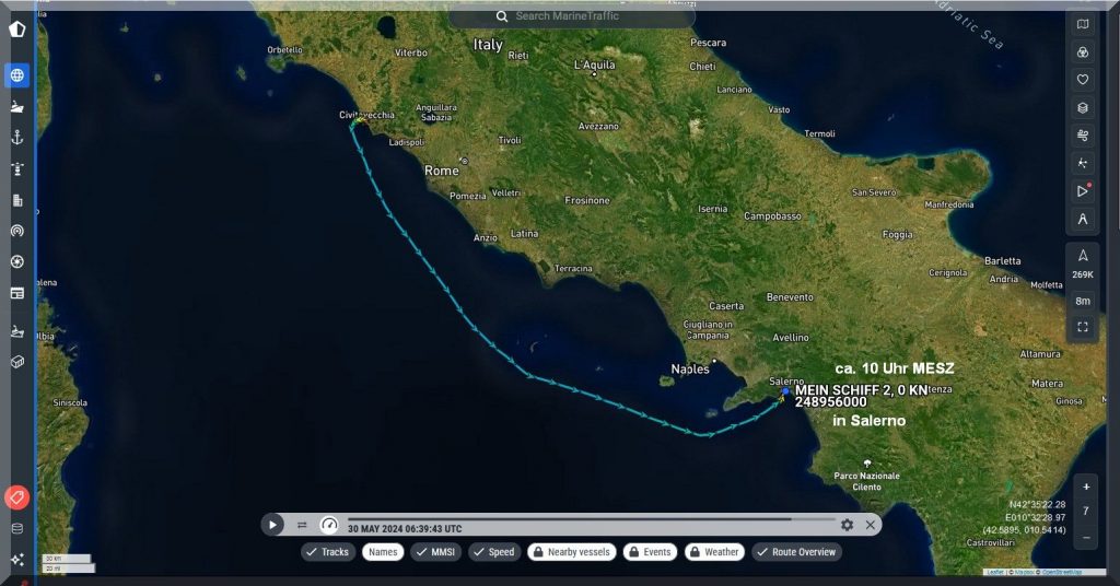 Dafür hatten meine Kreuzfahrer eine ruhige Überfahrt nach Civitavecchia bei Rom, wo sie in wenigen Minuten um 7 Uhr festgemacht haben werden: