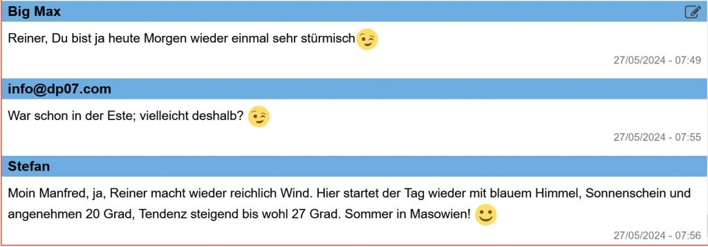 Gegen 13 Uhr blitzt ein neuer Statusbericht von Philipp bei WindPredict auf – hier ist er: