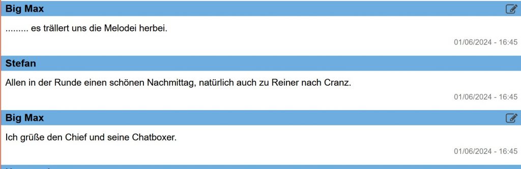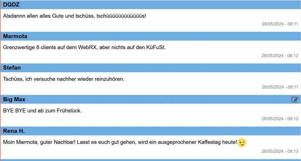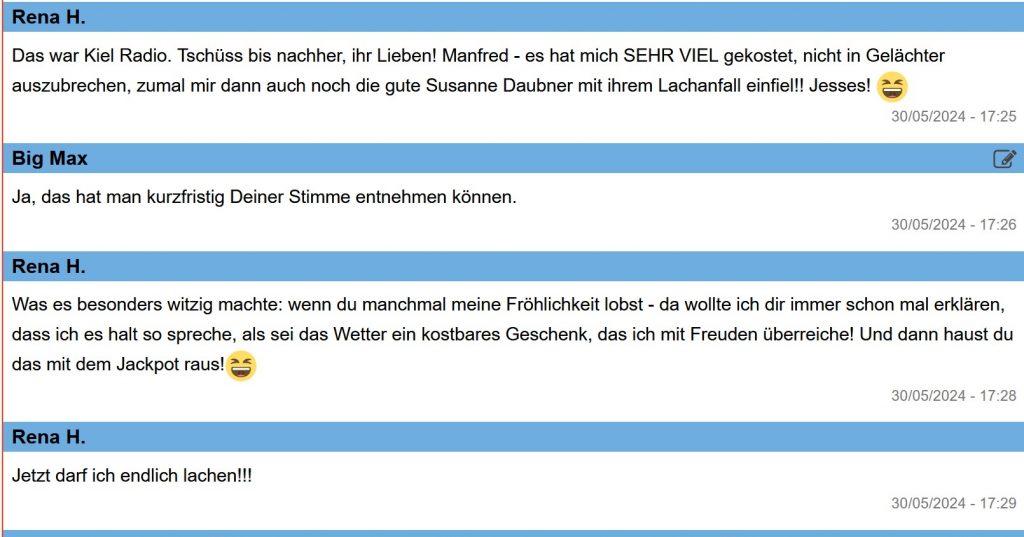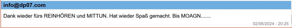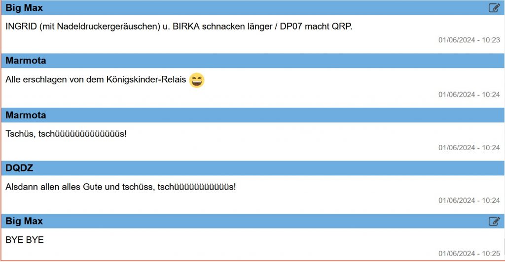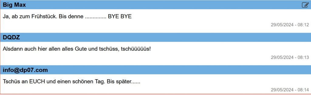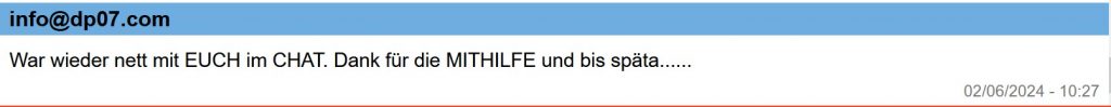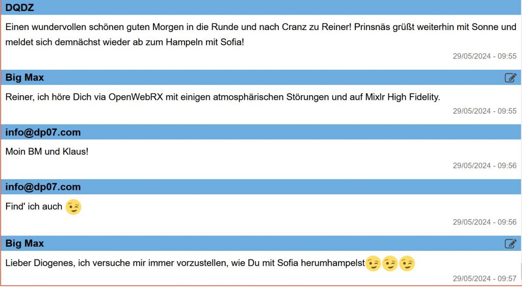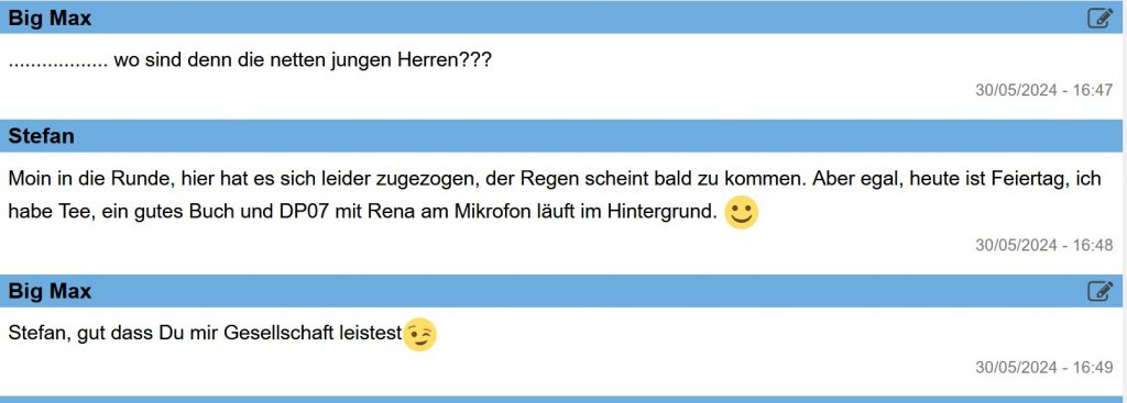 Auszugsweise das Protokoll aus der Chatbox der Mittagssendung von DP07: