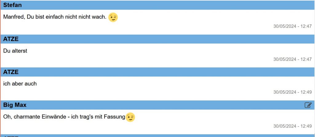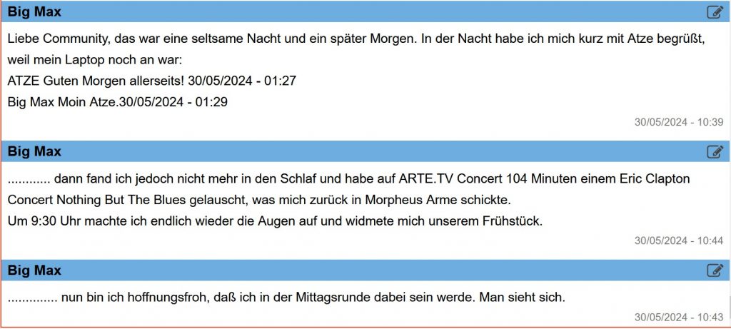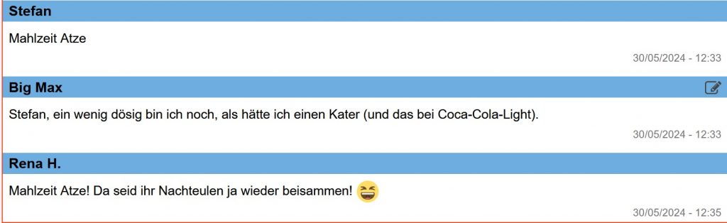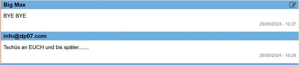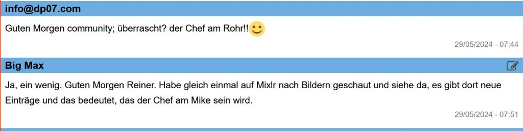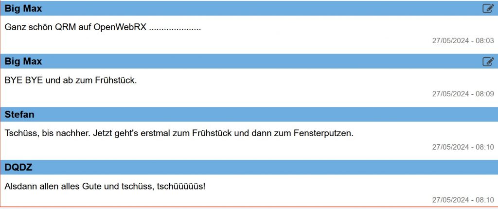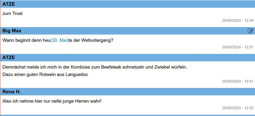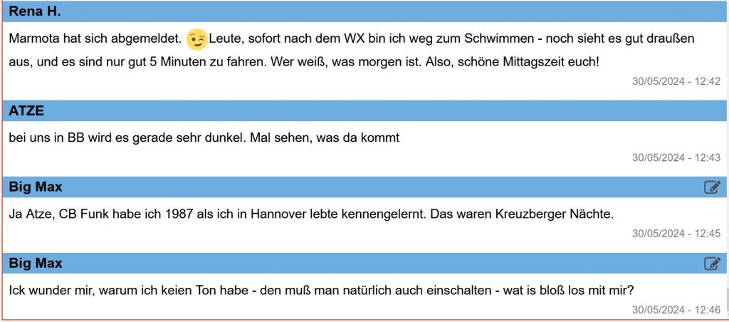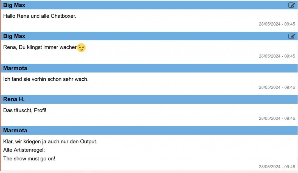Auszugsweise das Protokoll aus der Chatbox der Mittagssendung von DP07: