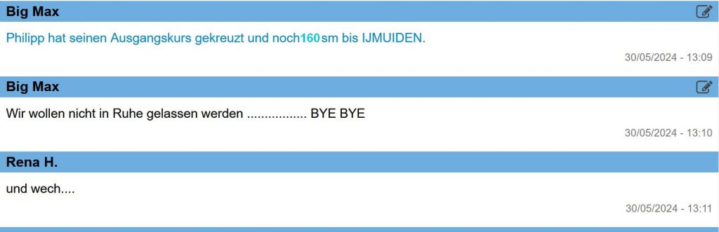 ja, ich segel weiter, alles andere würde ich bereuen. Notfalls Scheveningen, aber jetzt hab‘ ich so viel durchgemacht….danke und Grüsse Philipp