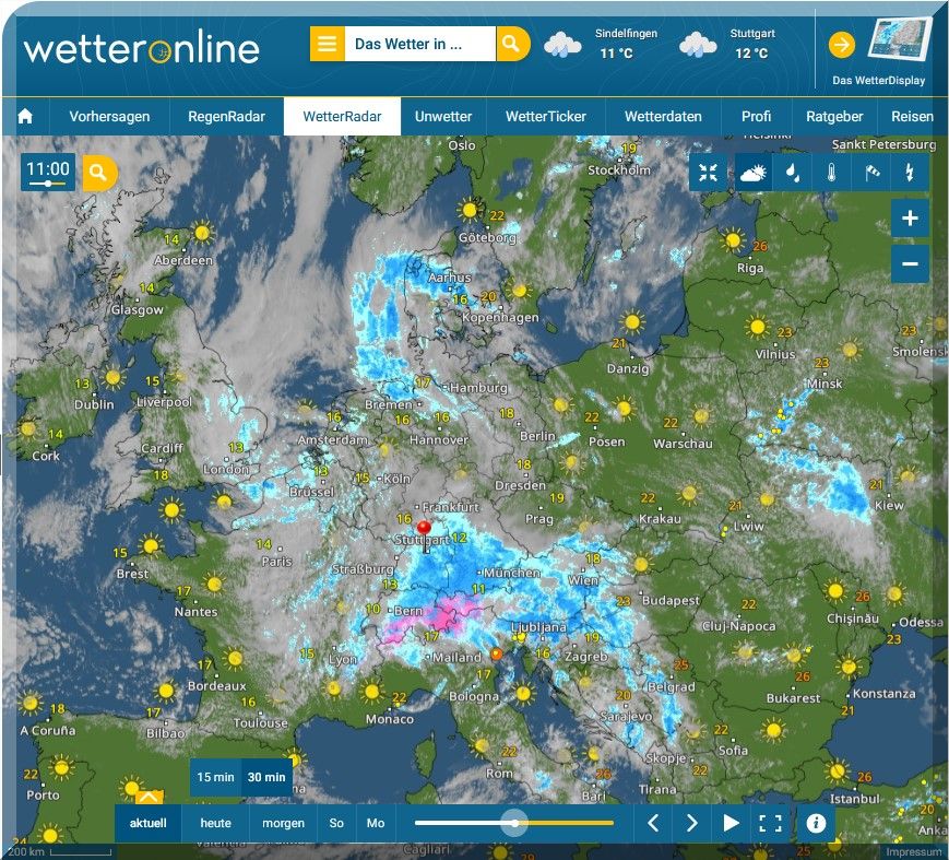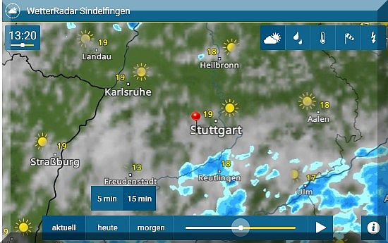 …… doch bislang war immer ein Wolkenloch über dem Raum Stuttgart: