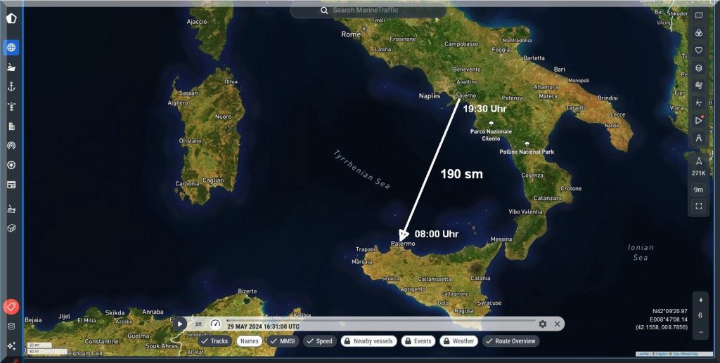 10 Uhr ……….. und hier die Positionen meiner 3 Schiffe in meiner „Armada“: