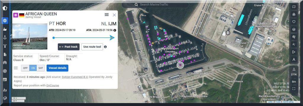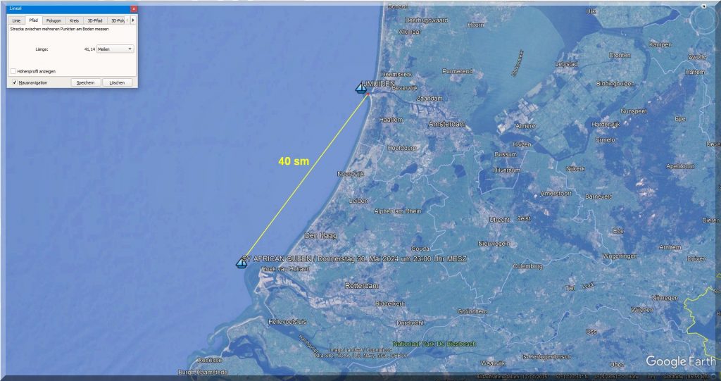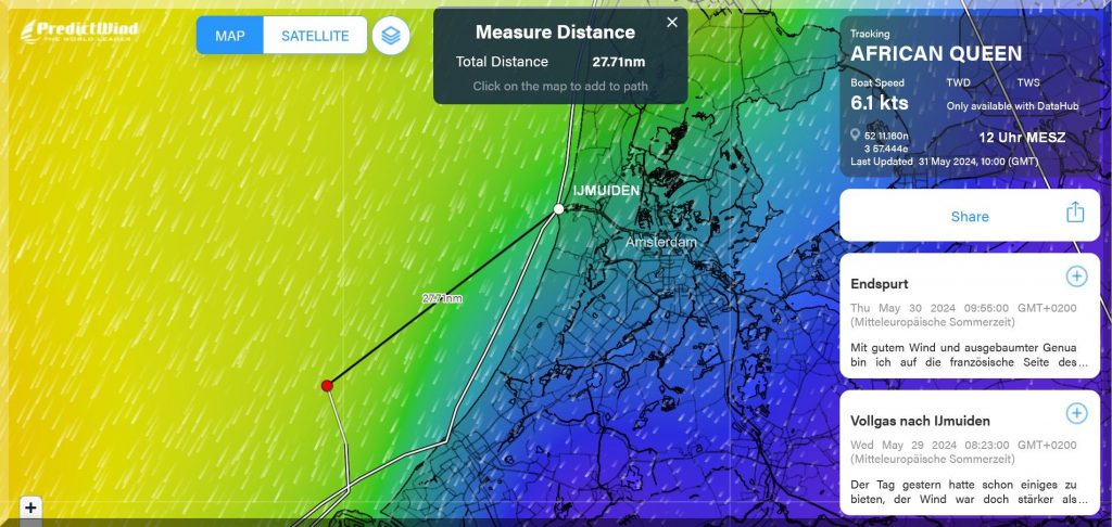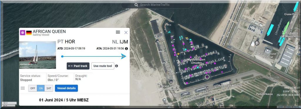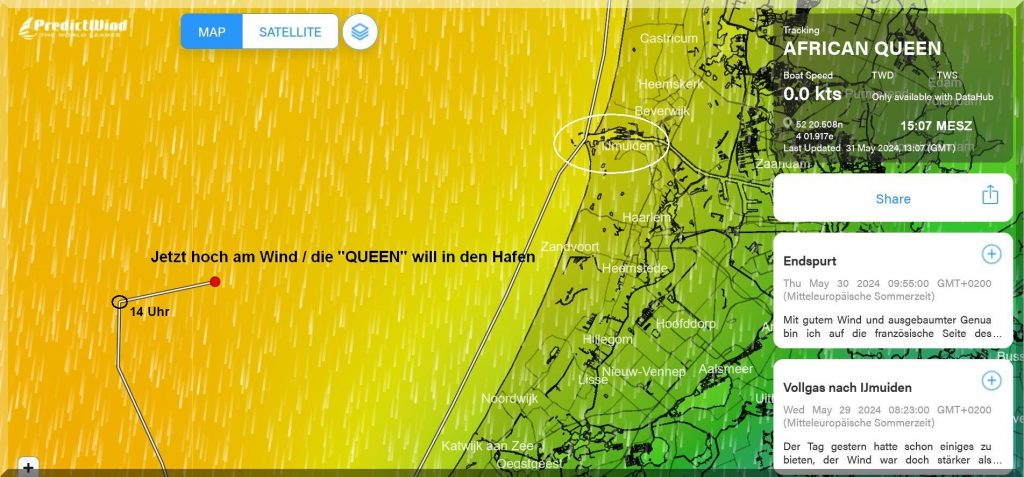 Wie ihr am Tracker seht, bin ich in IJmuiden angekommen und Boot und ich sind heile geblieben, aber beide auch gealtert.