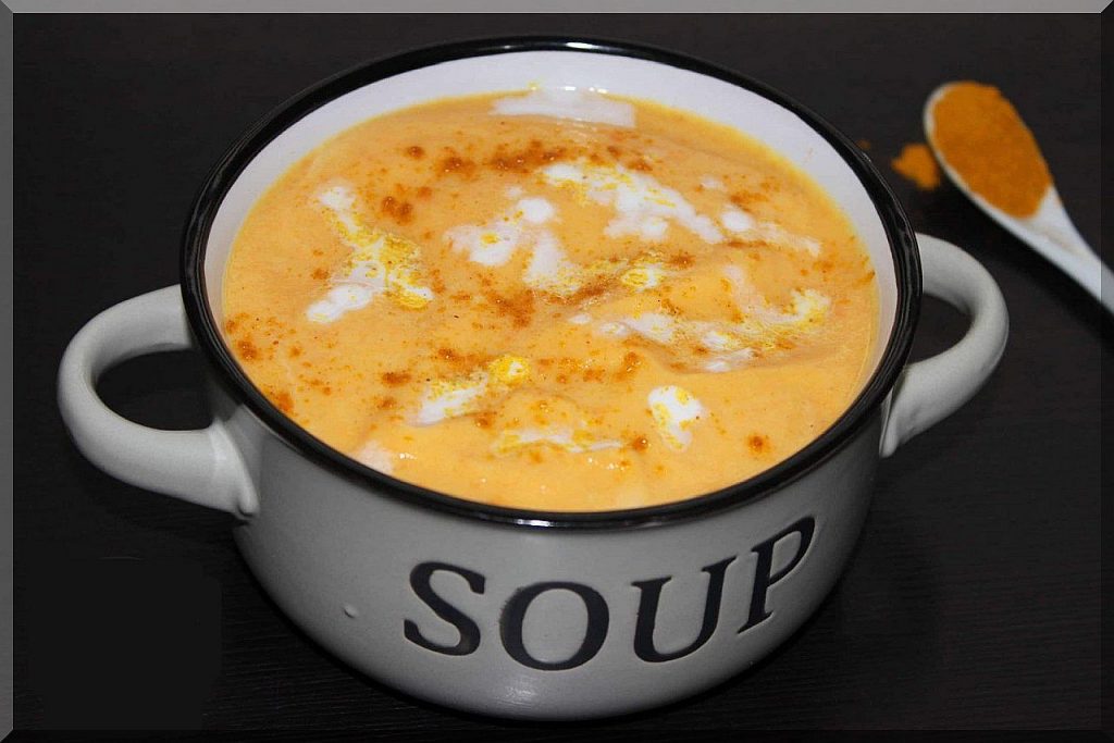 Es gab eine Knorr-Tüten-Spargelcrèmesuppe, die wir noch mit dem restlichen Blumenkohl von gestern aufgepeppt haben. Meine Suppe habe ich mir noch mit Curry und Butter verfeinert.