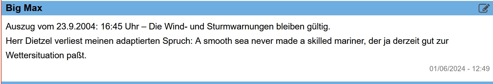 Ich wünsche Euch einen schönen Törn & Fair Winds.