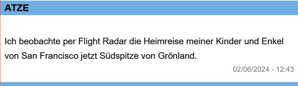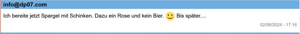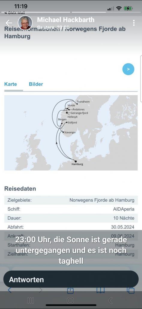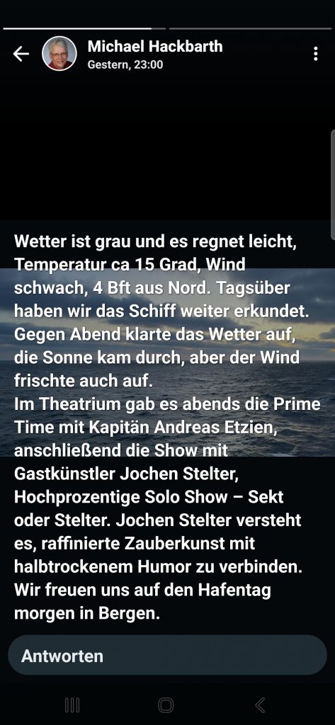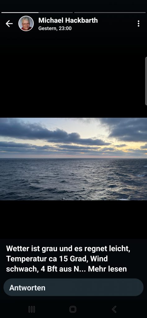 Reisegruß von Michael Hackbart – erhalten, gestern 23 Uhr: