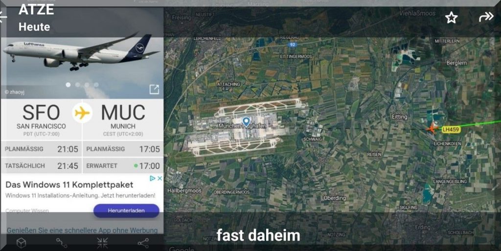 – planmäßige Ankunft um 8 Uhr MESZ –