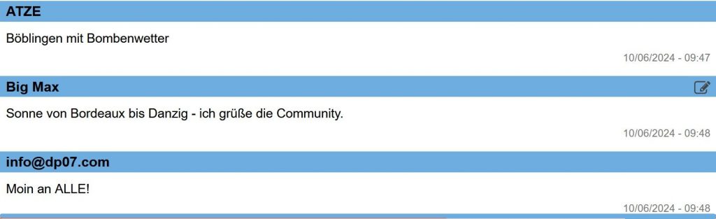 Es erreichen mich schöne Bilderbögen aus Bayern von Moni & Siggi und von der Ostsee von Angela & Manfred – meinen Dank schicke ich Euch dafür.