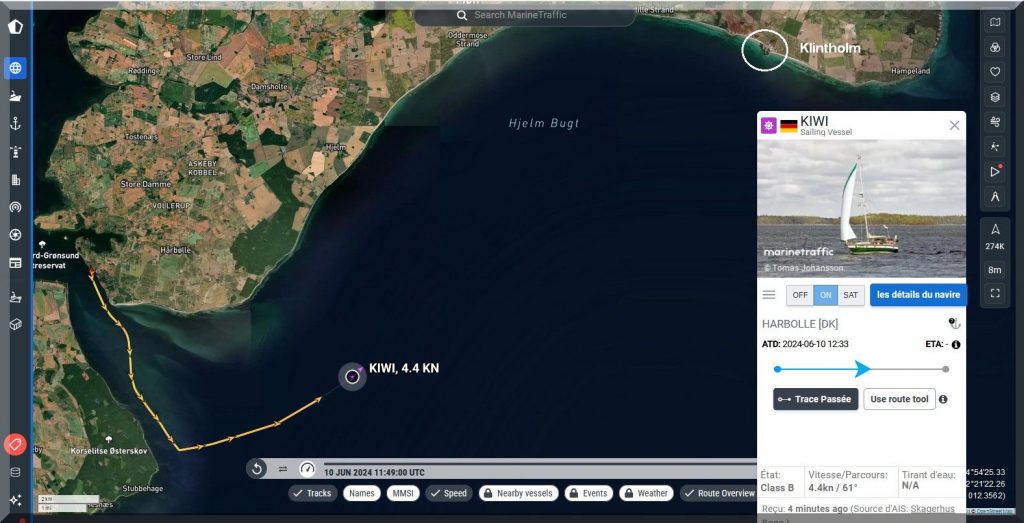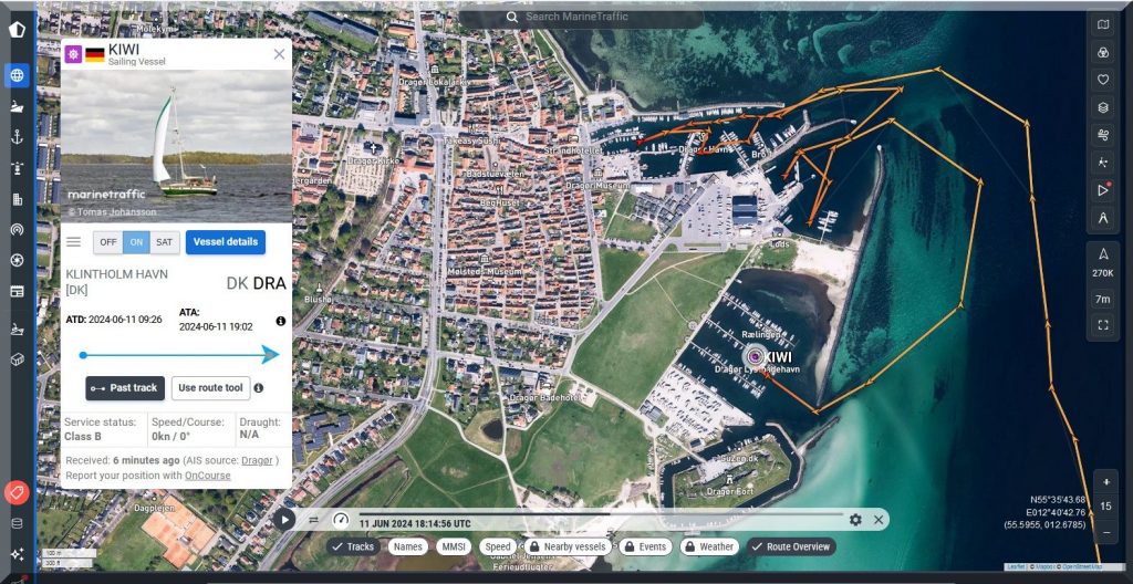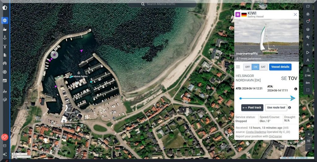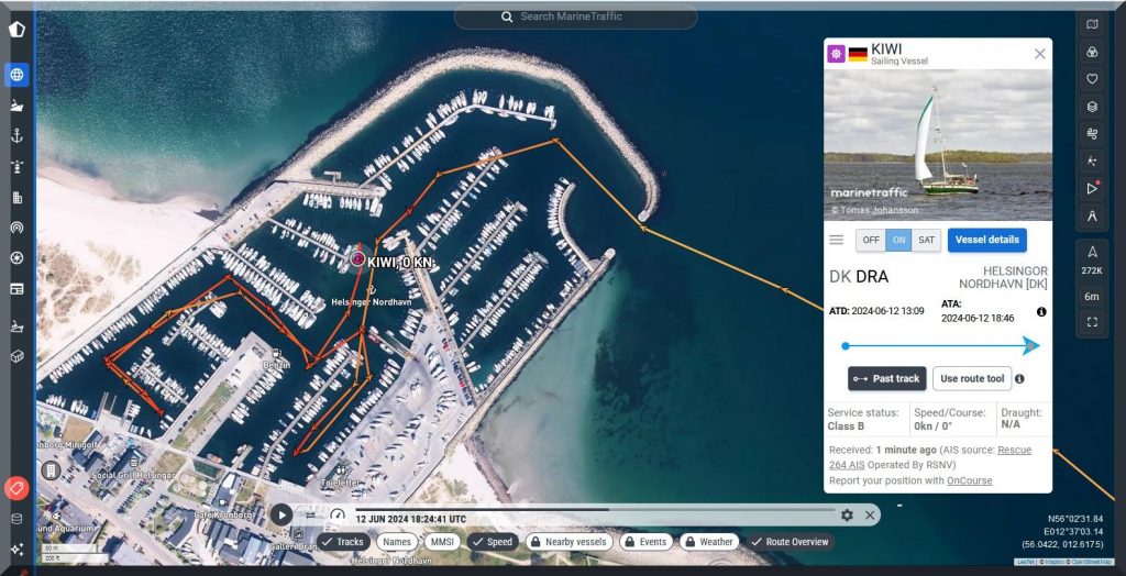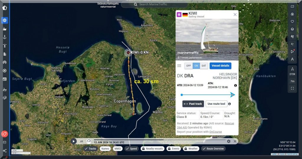 Ich schau‘ mal nach der SY KIWI und entdecke sie bereits in Helsingør/DK: