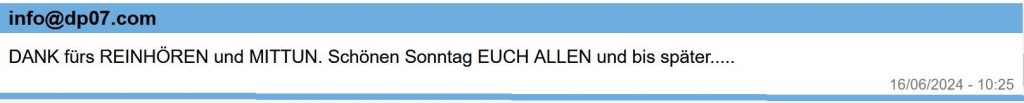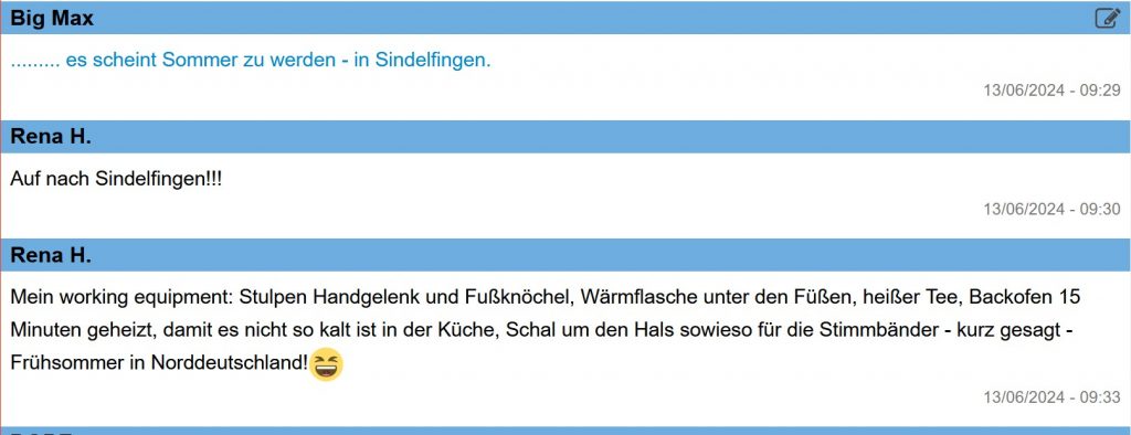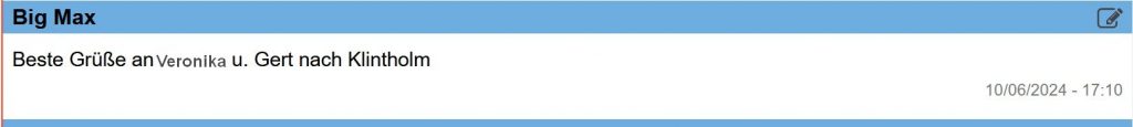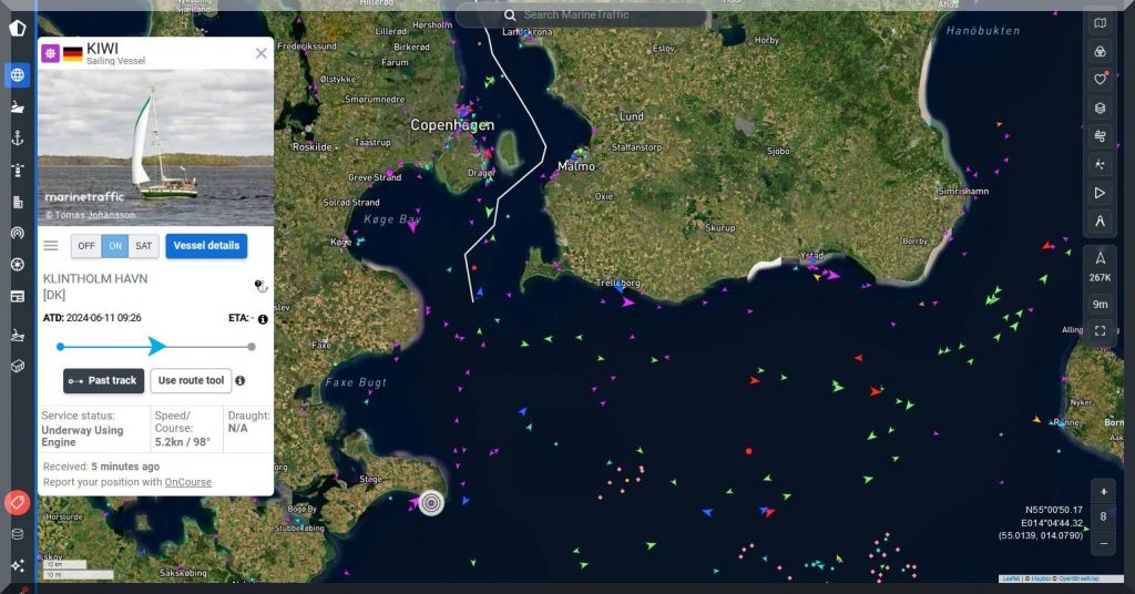 8:15 Uhr – Gert von der SY KIWI macht Meldung aus Klintholm und fragt bei Rena an: Wann wird’s denn endlich wieder Sommer. Als nächstes Ziel wird Kopenhagen angepeilt, wozu ich gute Reise wünsche.