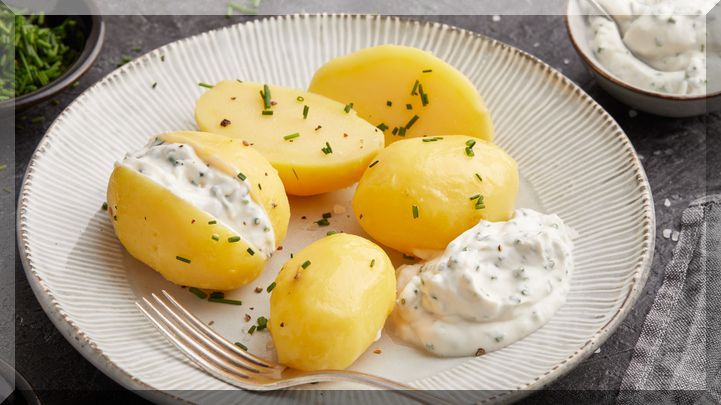 18 Uhr – Abendessen: Quark mit Schittlauch, Salz, Pfeffer, Paprika u. Chiliflocken, Ajvar und Pellkartoffeln: