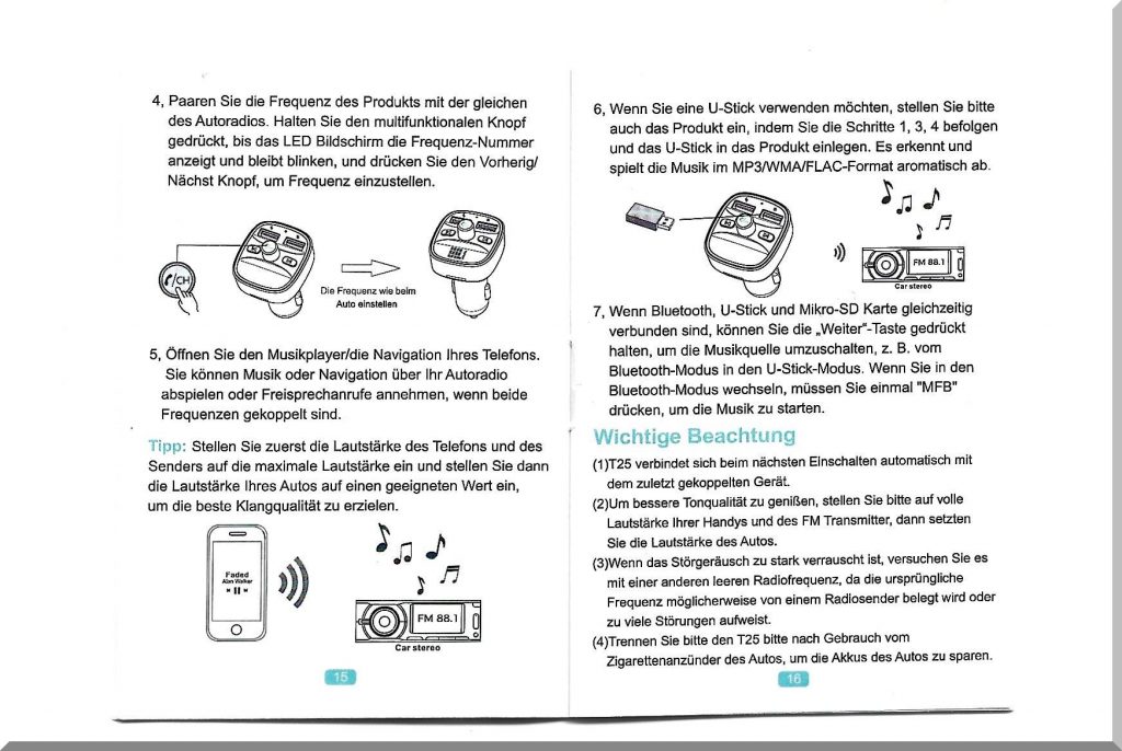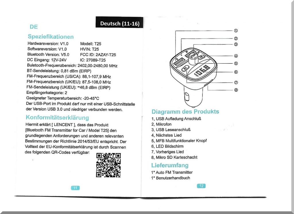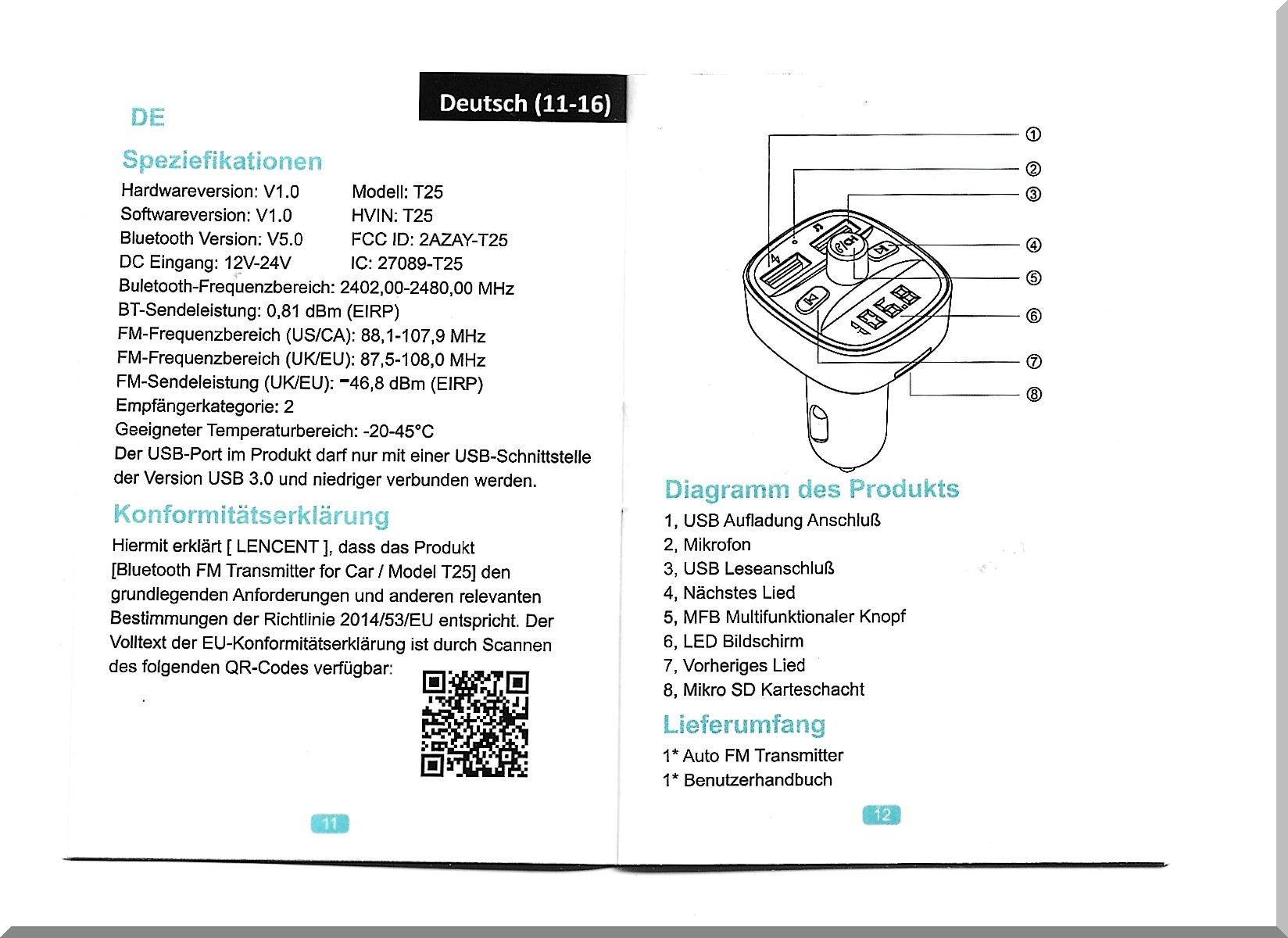 - Kristallklare Musik streamen – LENCENT T25 ist nach dem antistatischen Prinzip entwickelt und mit CVC-Technologie zur Geräusch- und Windunterdrückung ausgestattet, die eine Klangqualität in Vollduplex-Qualität ermöglicht. Sie können Musik auf Ihr Autoradio über Bluetooth / Flash USB (≤32GB) / Micro SD-Karte (≤32GB) streamen. Musikformate: WMA/MP3/WAV/APE/FLAC.