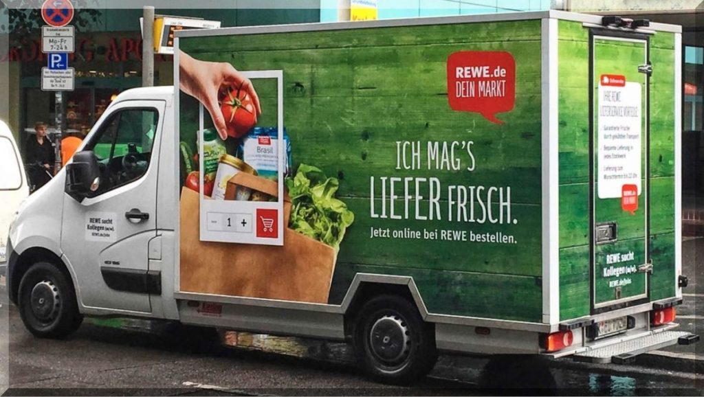 11 Uhr – Unser REWE-Lieferservice war auf die letzte Minute pünktlich. Nachdem wir hier mit diesem Service begonnen hatten, sehen wir die REWE-Servicefahrzeuge jetzt öfter in unserem Wohnquartier.