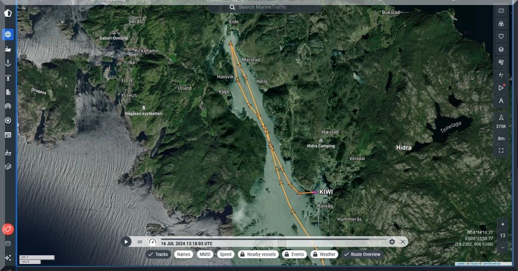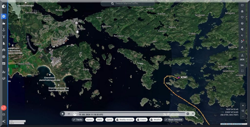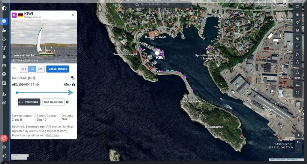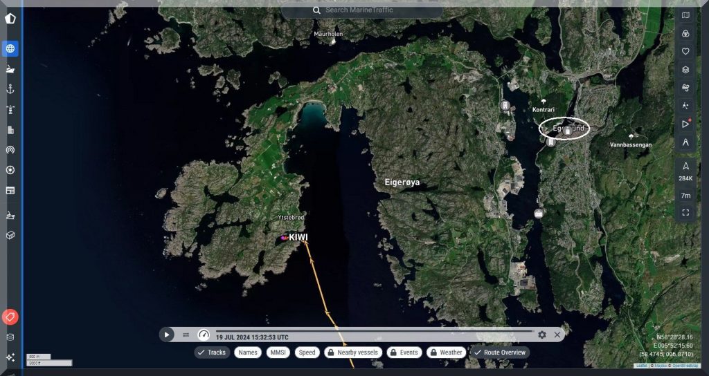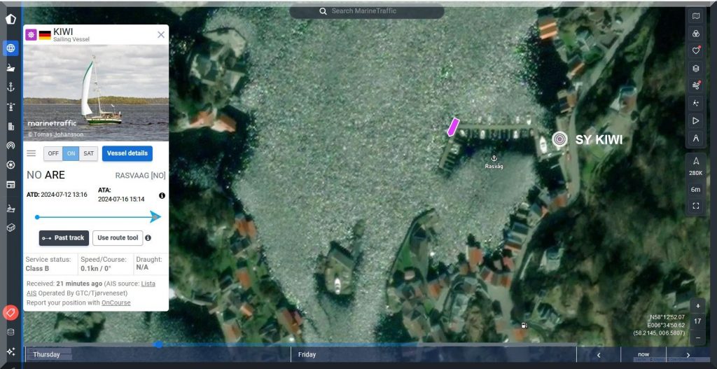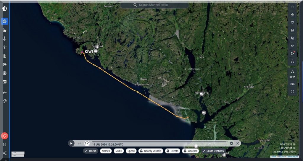 SY KIWI ist um ca. 11 Uhr in Rasvåg aufgebrochen. Egersund könnte das nächste Ziel sein. Das schaue ich mir abends wieder genauer an.